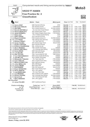 [2012年アッセンGPリザルト【FP3】:モト3]