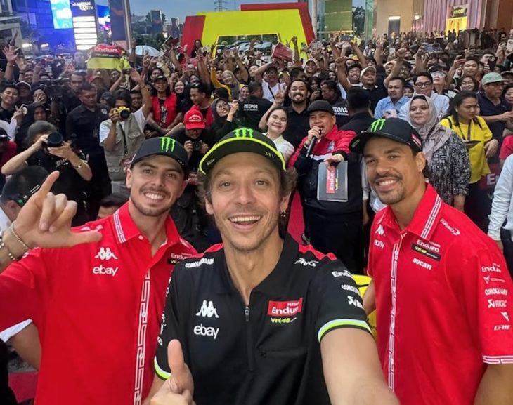 ★今回、ヴァレンティーノ・ロッシ(46才、最高峰クラス7回タイトル獲得)は、VR46チームの特製カラーリング披露のためパドック入りしている。