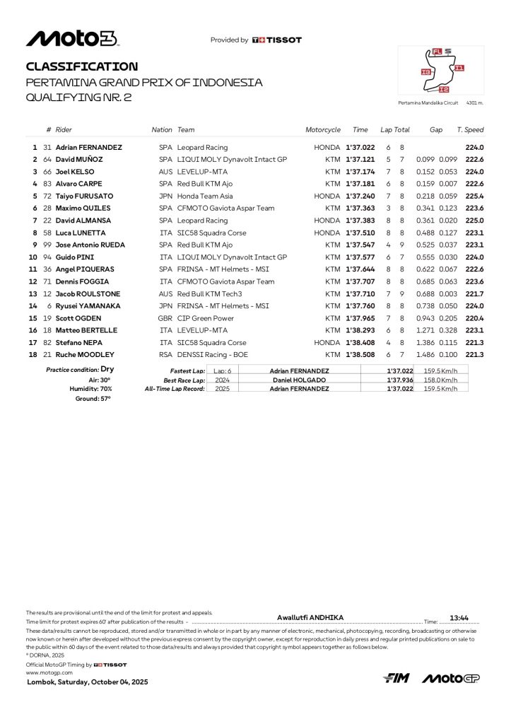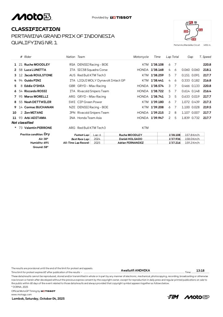 ★10月4日(土)、インドネシアGP モト3クラスの予選が行われた。