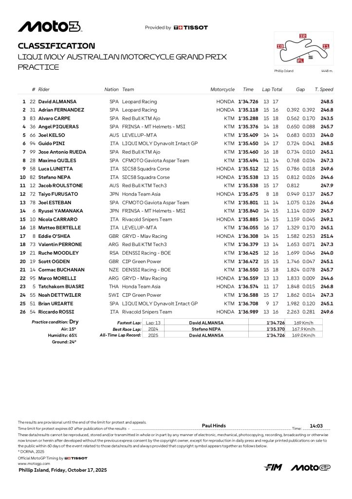 『2025 オーストラリアGP モト3 PRリザルト』