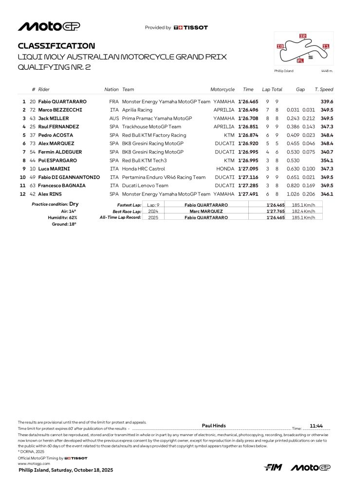 『2025 オーストラリアGP モトGP 予選2リザルト』