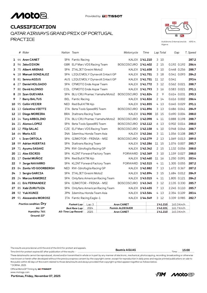 『2025 ポルトガルGP モト2 PRリザルト』