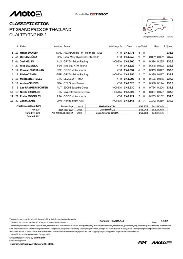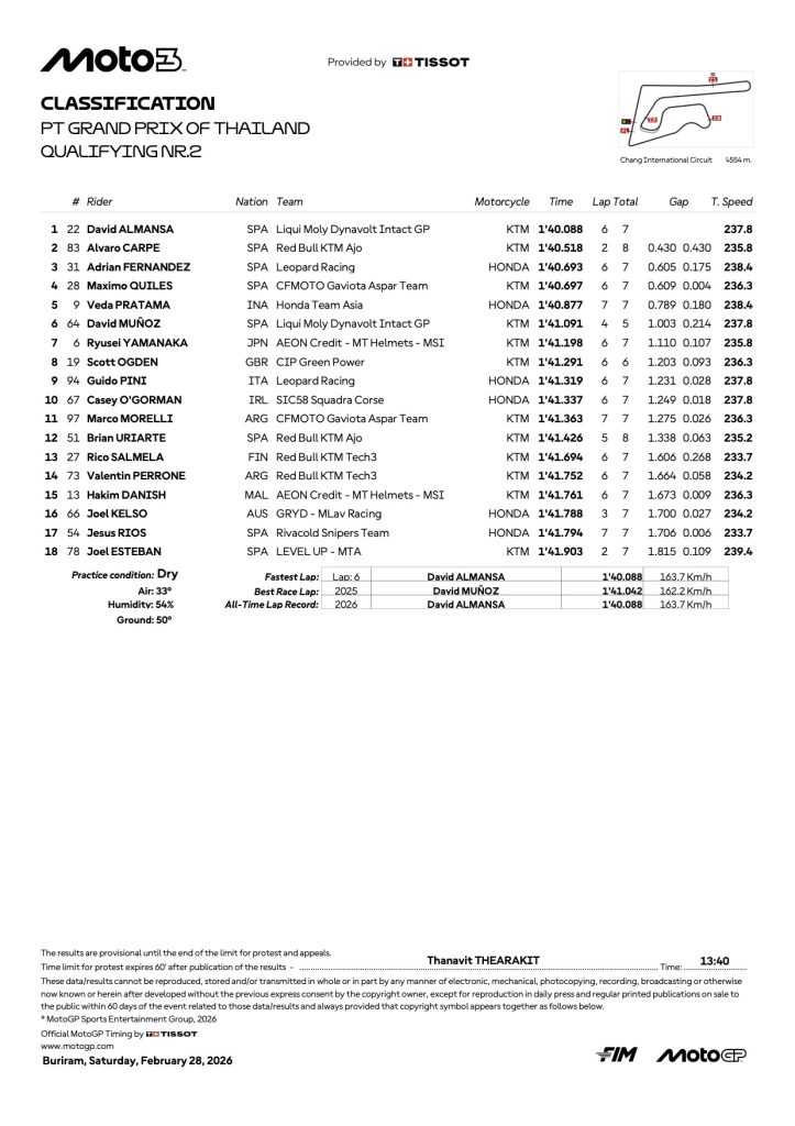 Screenshot『2026 タイGP モト3 予選リザルト』