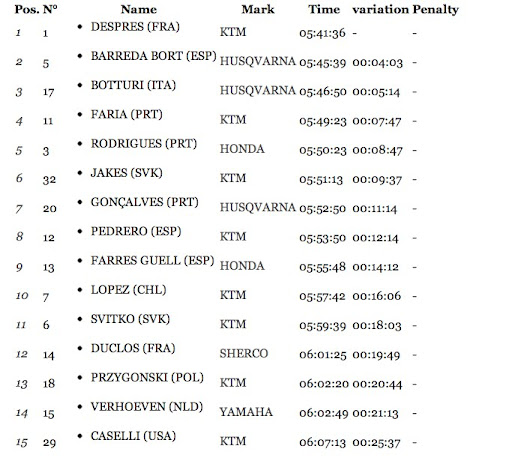 すごく難しくて危険なステージでした。地面がすごく滑って、転びやすいんだ。593km走ったけど…牛、馬、鳥、沢山の動物と出会って…事故をさける為に減速を強いられる事になりました。2位の順位は満足してます。この腕じゃ、これ以上はプッシュ出来なかったしね。