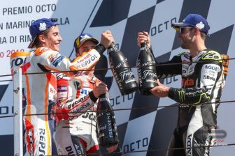★9月9日(日)、ミザノGPのモト2クラス決勝戦で、ロマーノ・フェナーティ(マリネッリスナイパーズ)がステファノ・マンズィ(フォワード)のブレーキを故意に引いてマシンを停止させようとした。
