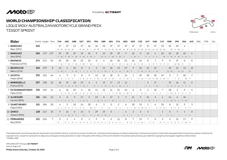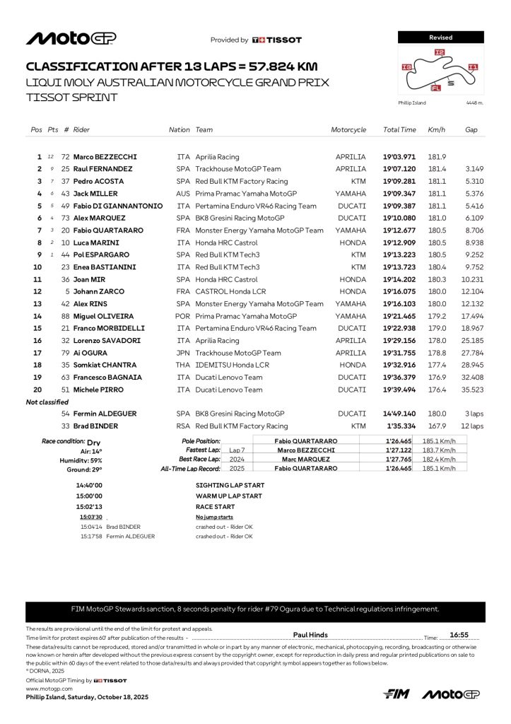 『2025 オーストラリアGP モトGP スプリントリザルト』