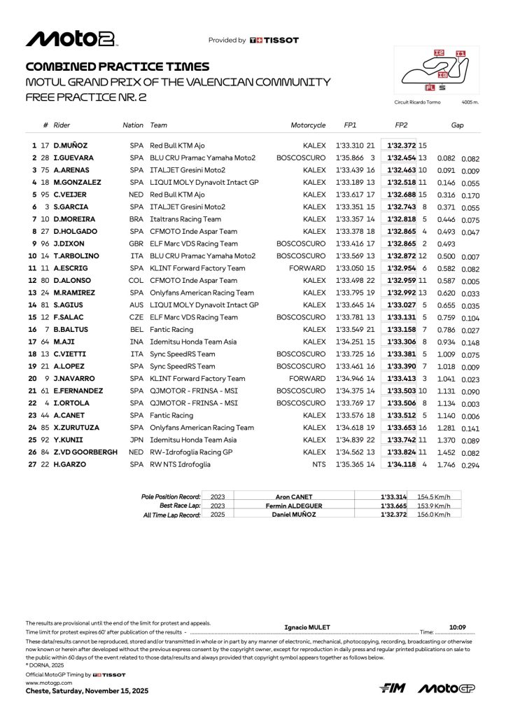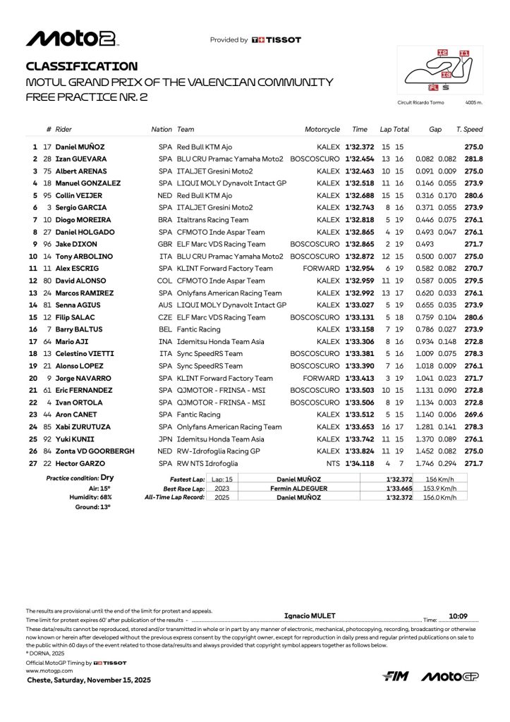 『2025 バレンシアGP モト2 FP総合リザルト』
