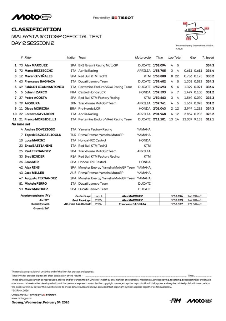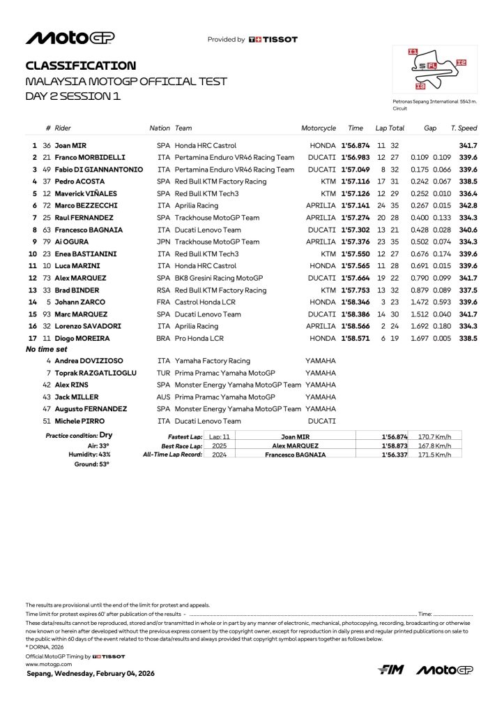 『2026 セパンテスト2日目 モトGP:リザルト&トピックス』