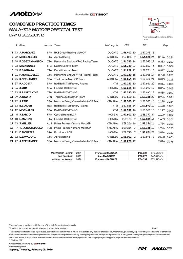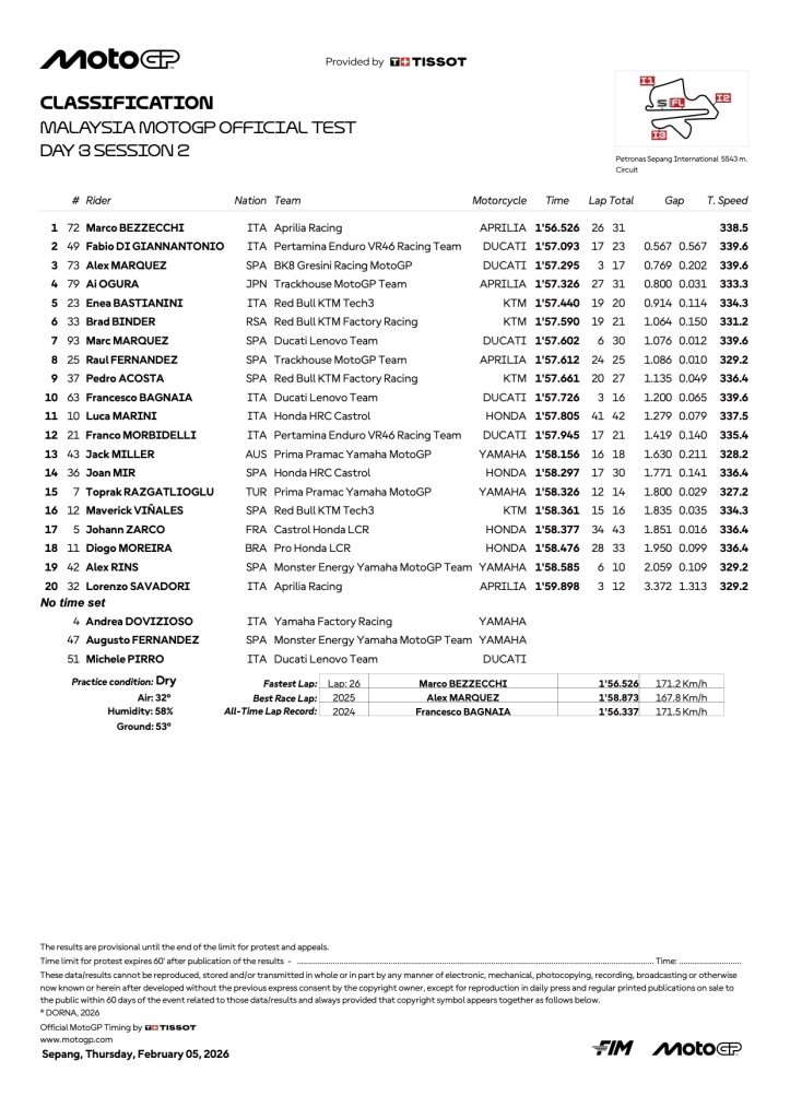 Screenshot『2026 セパンテスト最終日 モトGP:リザルト&トピックス』