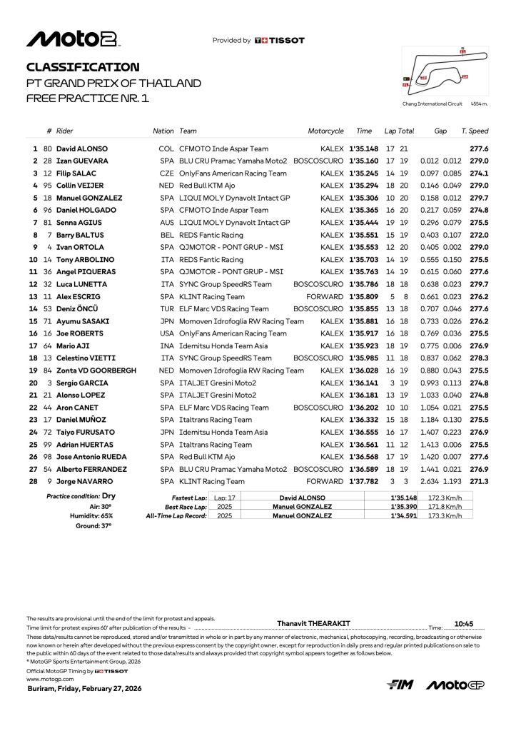 Screenshot『2026 タイGP モト2 FP1リザルト』