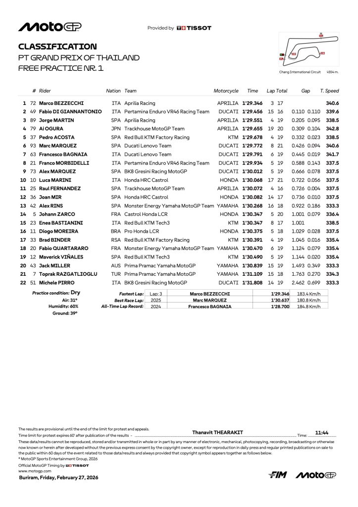 ★2月27日(金)、タイGP モトGPクラスのFP1が行われた。