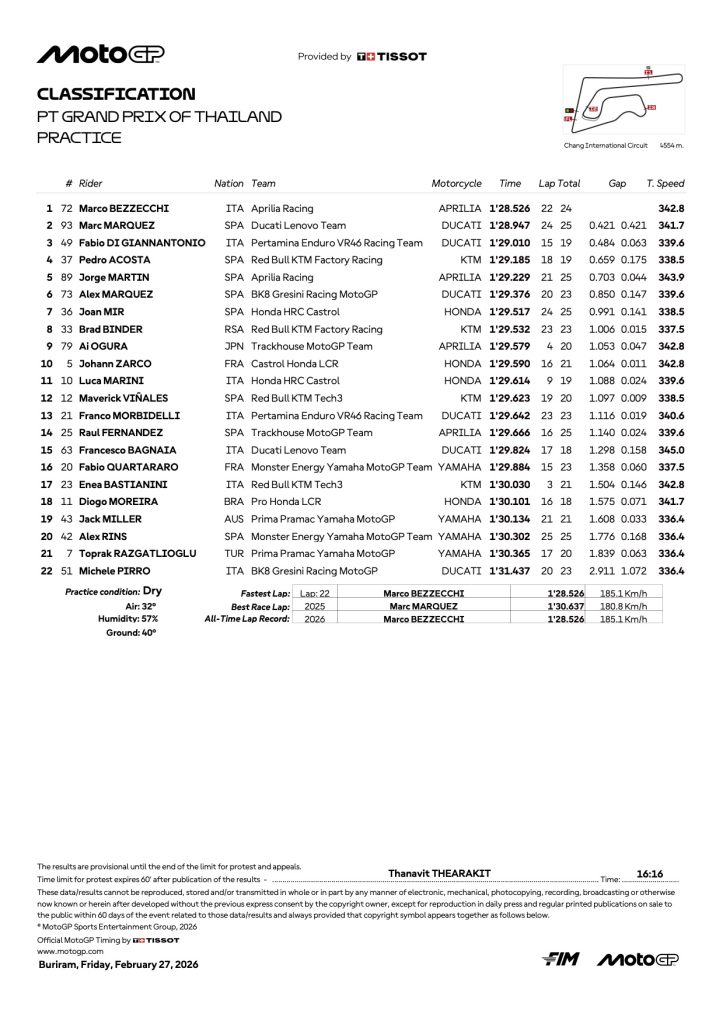 チームメイトのディオゴ・モレイラは18位(ルーキー、昨年モト2タイトル獲得)。