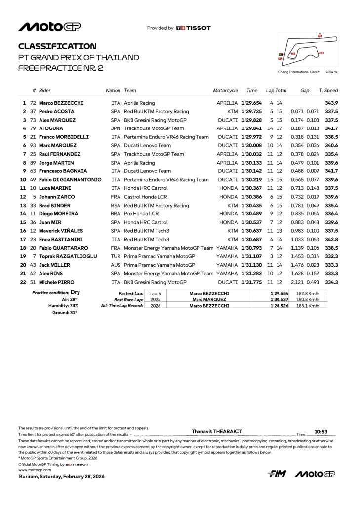 ★2月28日(土)、タイGP モトGPクラスのFP2が行われた。