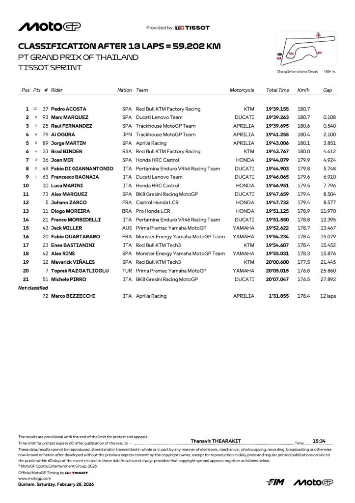 Screenshot『2026 タイGP モトGP スプリントリザルト』