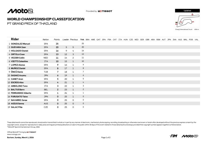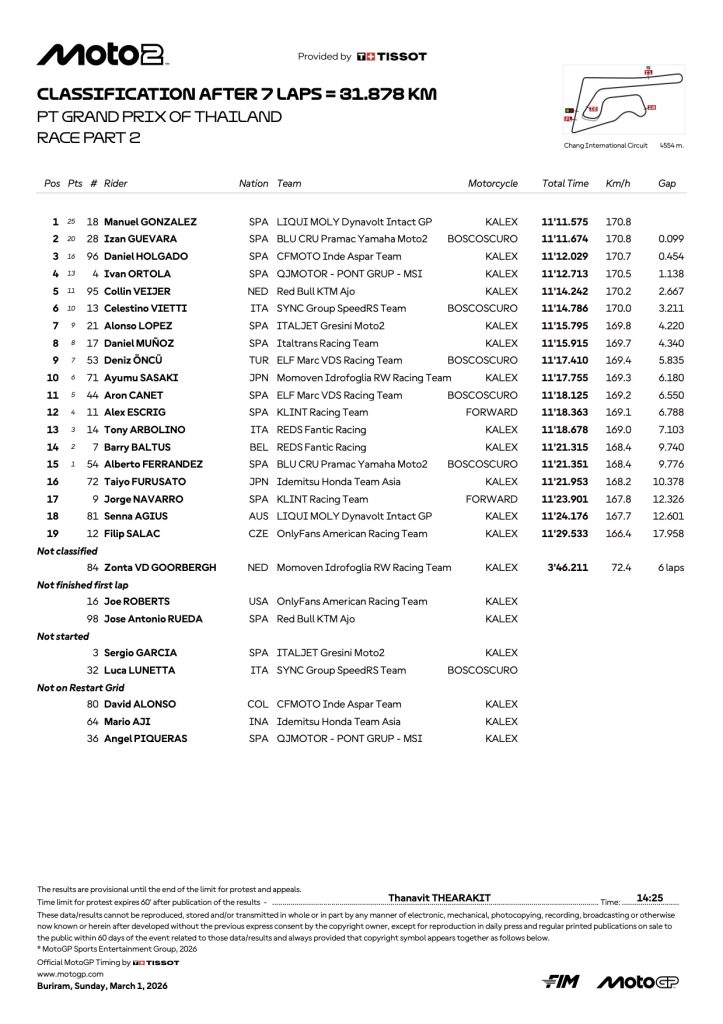 ★3月1日(日)、タイGP モト2クラスの決勝が行われた。