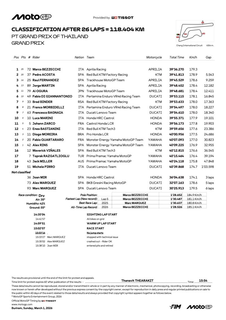 『2026 タイGP モトGP 決勝リザルト&トピックス』