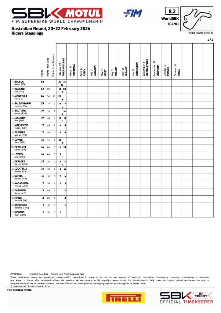 Screenshot『2026 SBK オーストラリア 全リザルト』