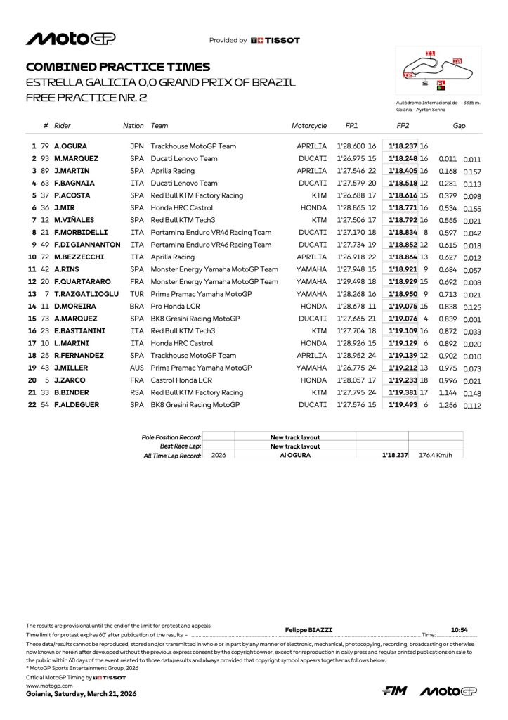 『2026 ブラジルGP モトGP FP総合リザルト』