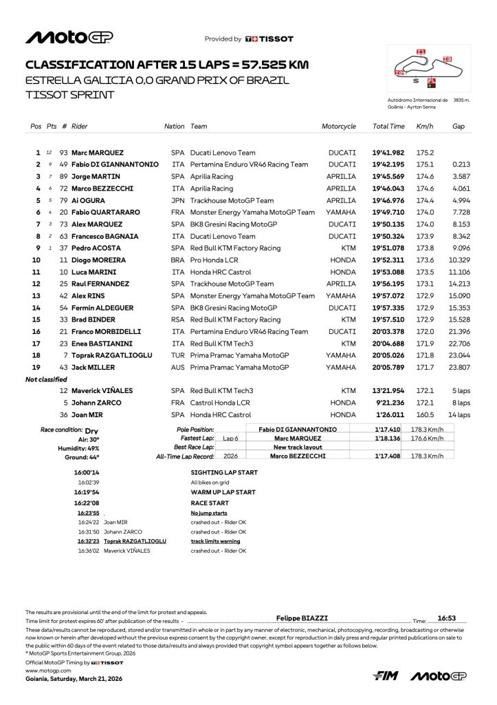 『2026 ブラジルGP モトGP スプリントリザルト』