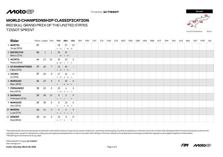 『2026 アメリカズGP モトGP 新スプリントリザルト』