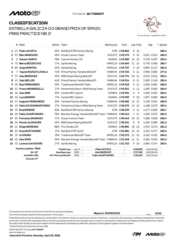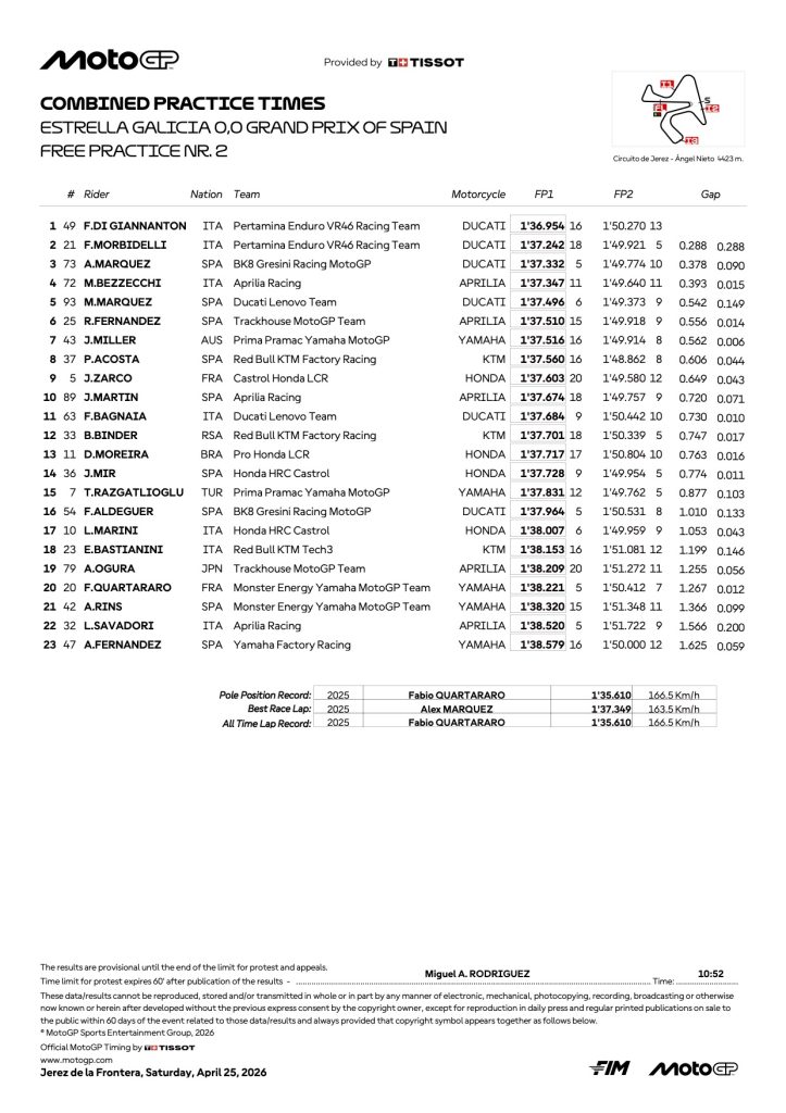 Screenshot『2026 スペインGP モトGP FP2リザルト』