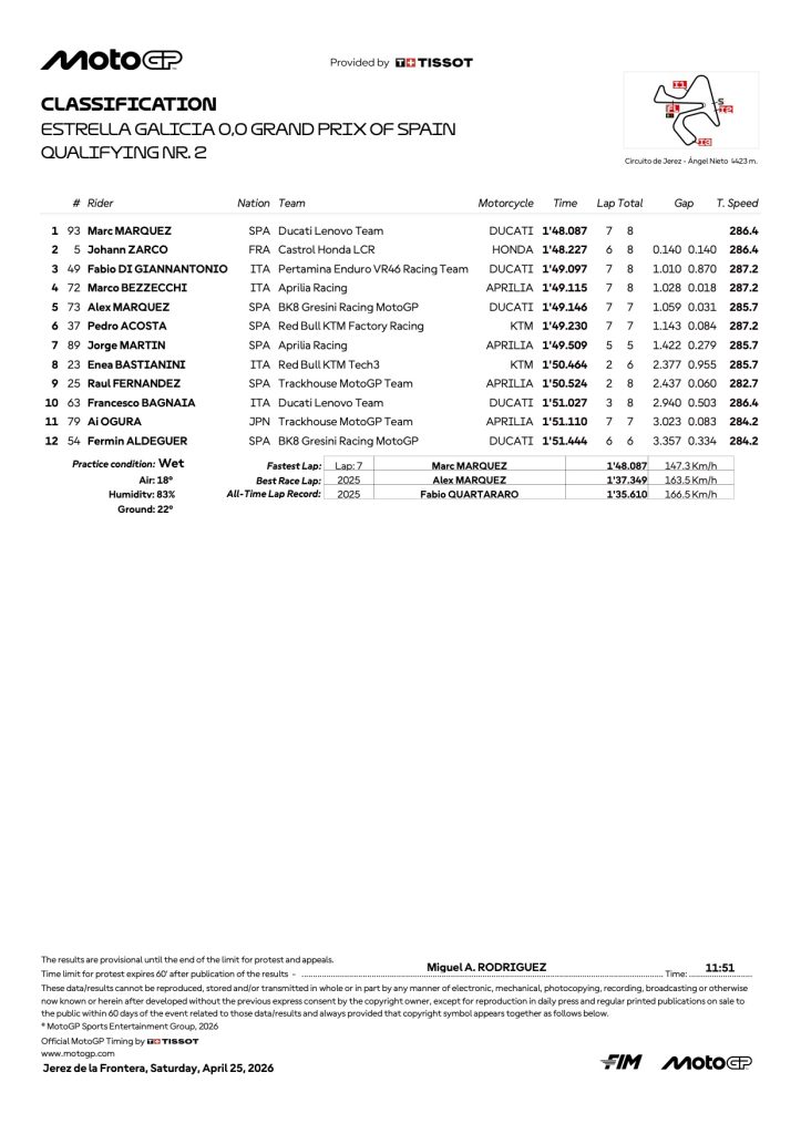 『2026 スペインGP モトGP 予選2リザルト』